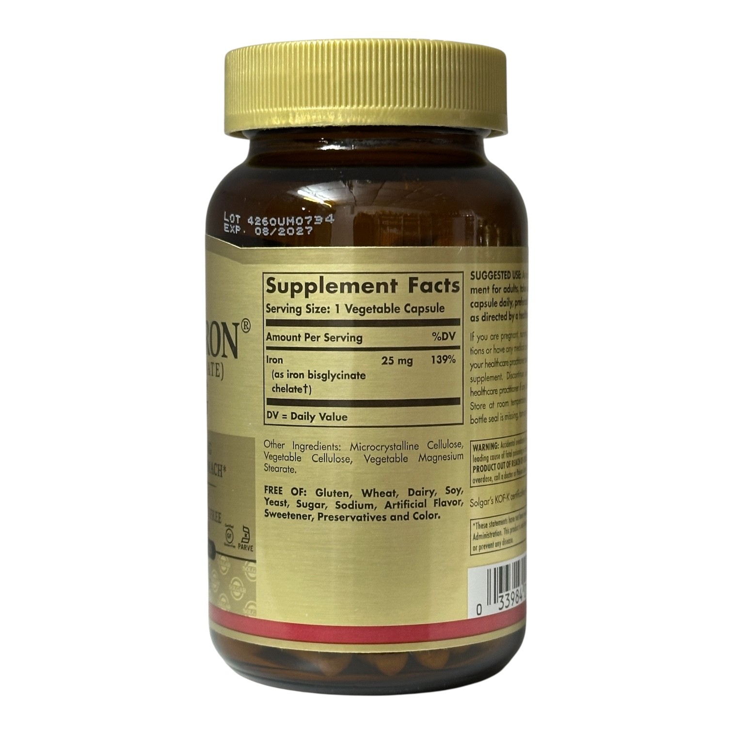 Кожна капсула містить 25 мг заліза у формі залізного бісгліцината, що забезпечує легке засвоєння. Упаковка містить 180 рослинних капсул.