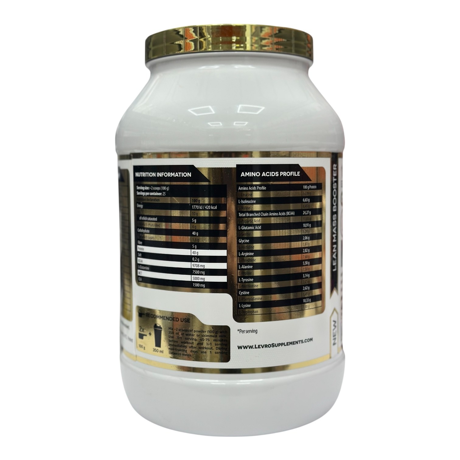 Продукт містить 40% білка, складні вуглеводи та мінімум цукру. Форма випуску — порошок, об’єм упаковки — 2500 г.