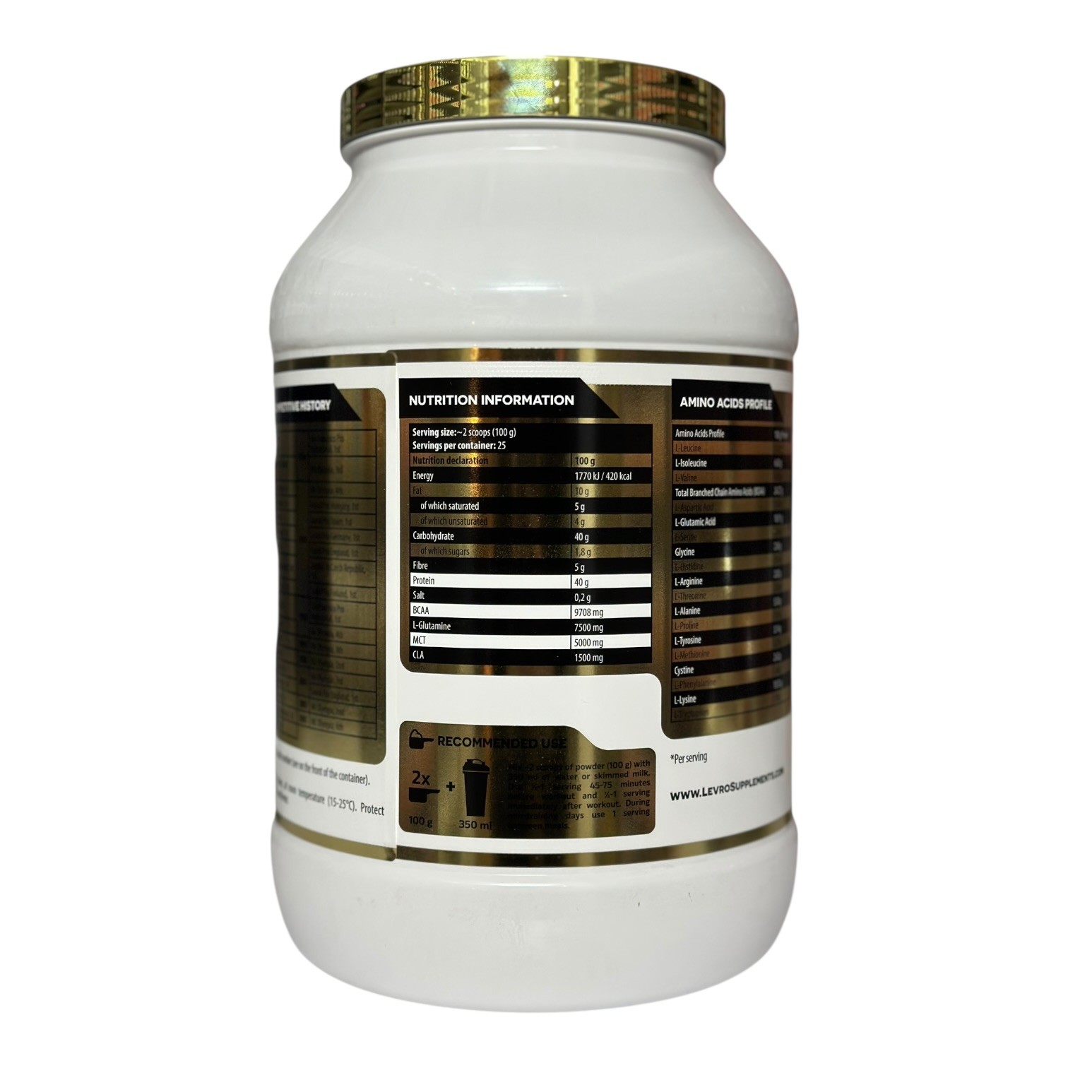 Продукт містить сироватковий протеїн, вівсяні волокна, а також натуральні ароматизатори. Упаковка містить 2500 г порошку, з яких 908 г — це сироватковий протеїн. Приймати по 1-2 мірні ложки (30 г) на день, змішуючи з водою або молоком, бажано після тренування. Не містить специфічних алергенів, окрім молочних продуктів.