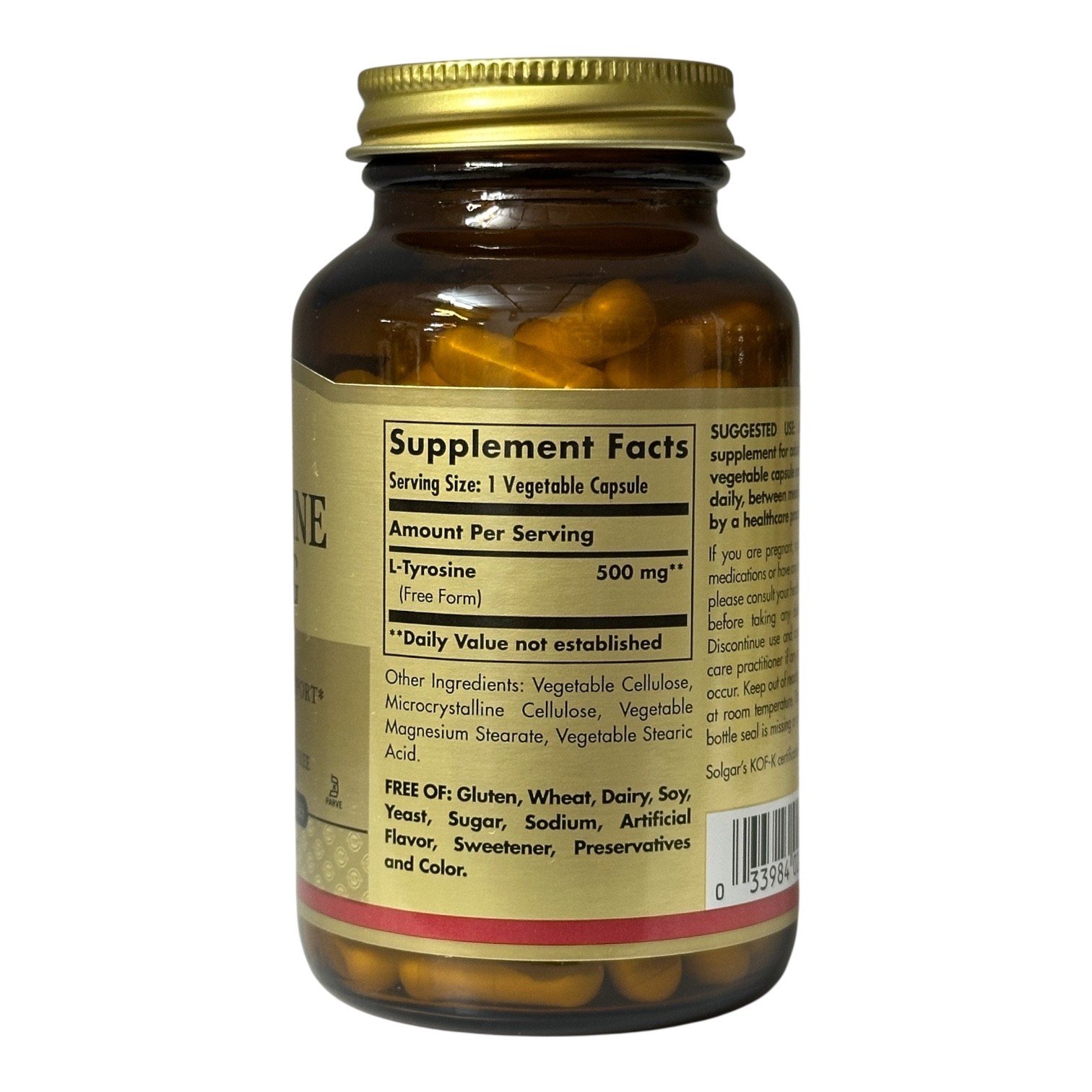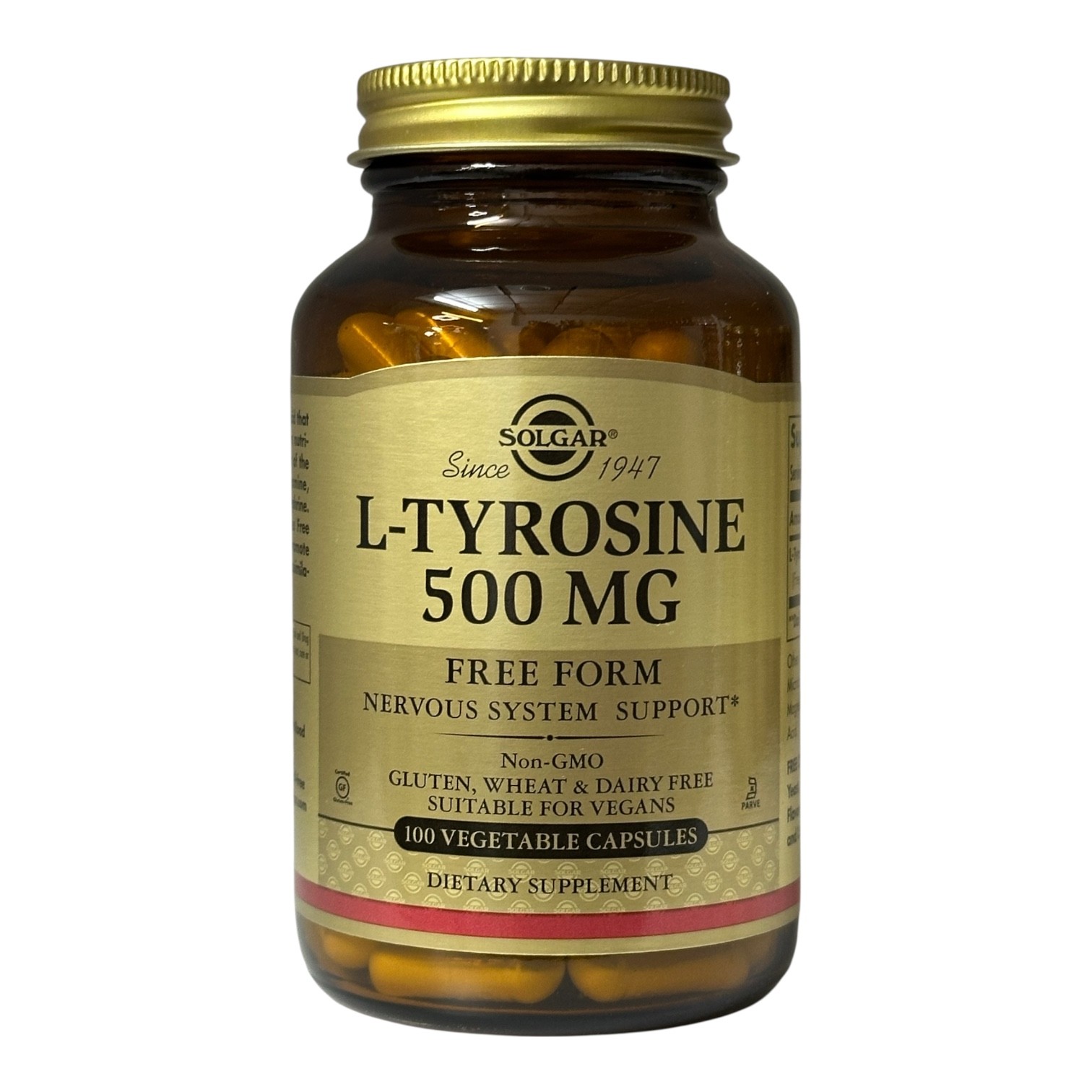 Solgar, L-тирозин, 500 мг, 100 рослинних капсул
