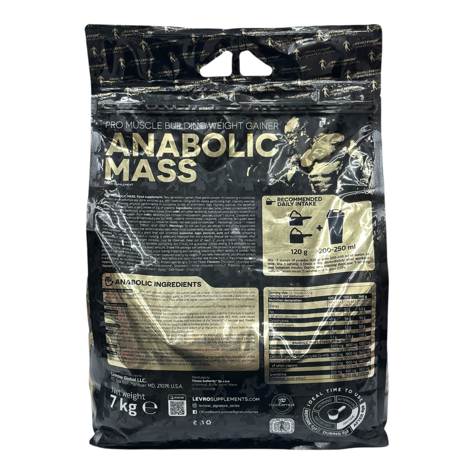 Гейнер, Kevin Levrone, Anabolic MASS 40% – 7 kg Білий шоколад – кокос — Потужний гейнер для набору маси та енергії