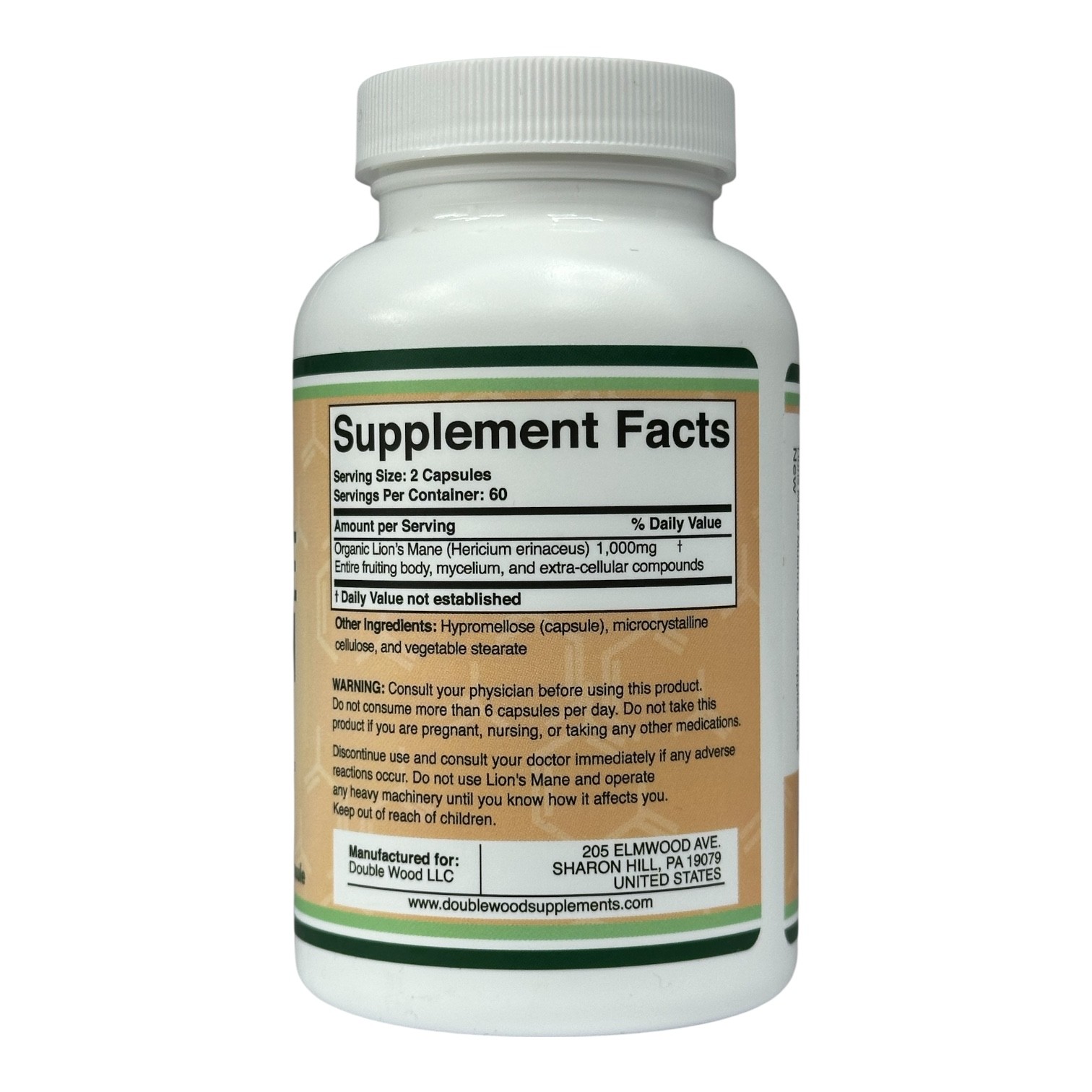 Їжовик гребінчастий Double Wood Lion’s Mane Mushroom 500 mg, 120 capsules — Підтримка когнітивних функцій та нервової системи